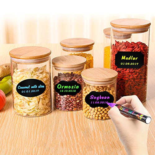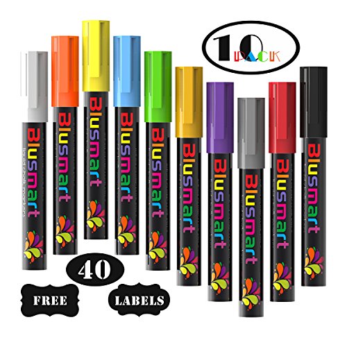 Chalk Markers, Blusmart 10pcs Bright Liquid Glass Window Pens with 40pcs Chalkboard Labels, Wet Wipe Erasable, 6mm Reversible Tips, Children Friendly