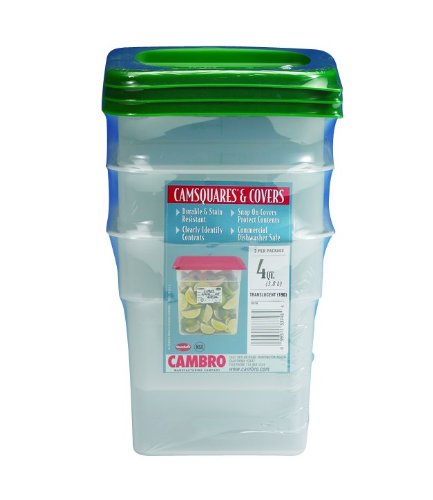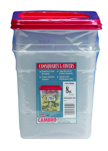 Cambro 2 Quart Translucent Square Food Storage Containers and Covers, 3 pack