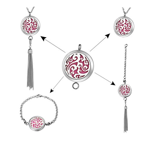 -. Title : Stainless Steel Aromatherapy Essential Oil Diffuser Necklace with Pierced,Silver Tone
