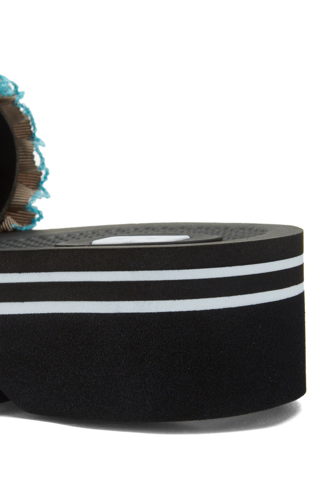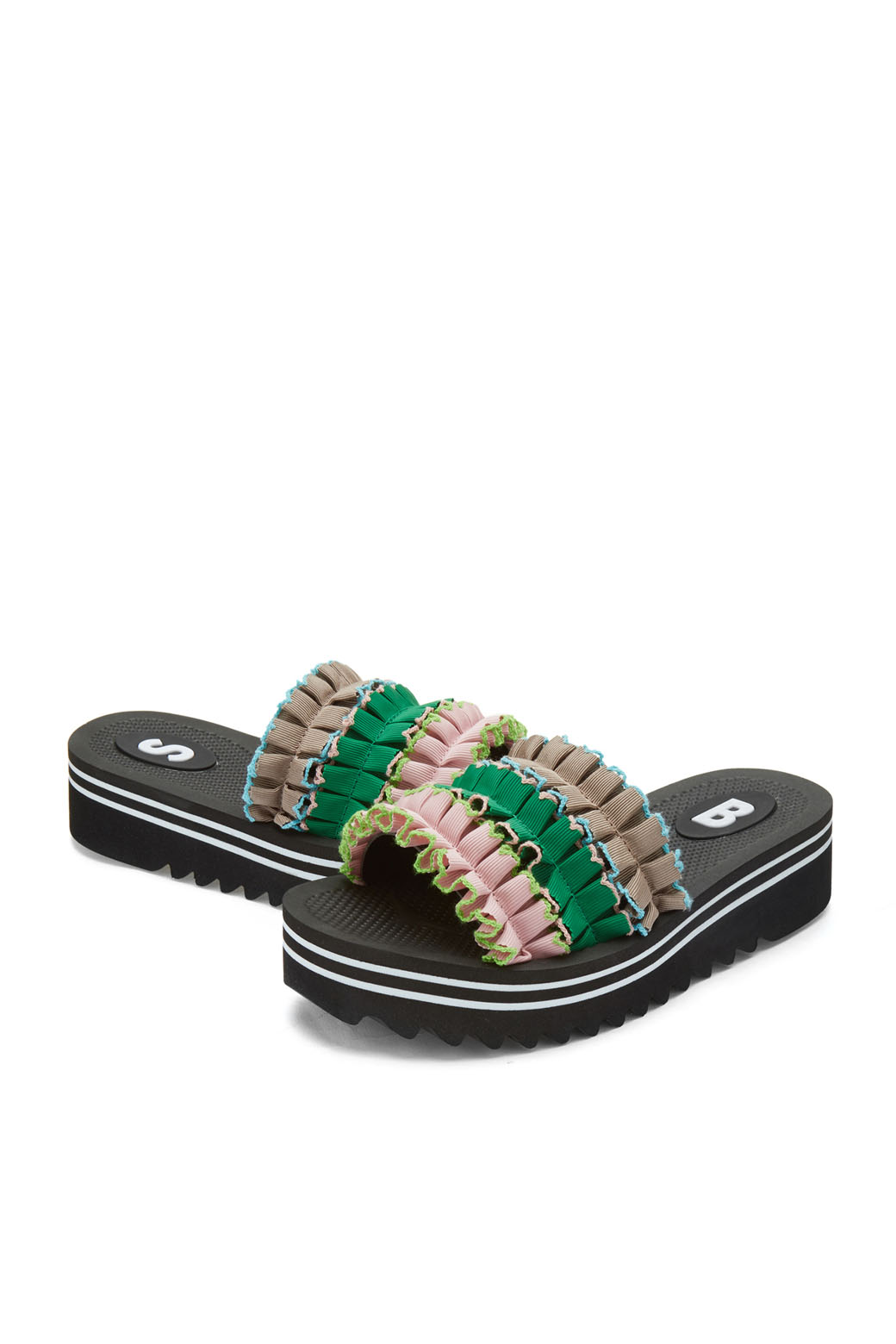 - 컬러 배색이 돋보이는 플리츠 디자인 샌들.- 웨빙에 가장자리의 피콧 디테일로 포인트.- 브랜드에서 자체 개발한 캐주얼한 창을 적용하여 브랜드만의 감각을 더한 디테일.- 모노톤의 룩에 매치하여 비비드한 컬러감 으로 포인트를 줄 수 있는 아이템.