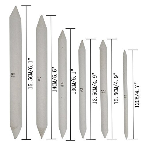 - Package includes: 6pieces blending stumps + 9pieces tortillions + 2pieces sandpaper sharpen pads blocks +1pieces pencil extension tool. Blending stump sizes: #1, #2, #3, #4, #5, #6, tortillion sizes: #1, #2, #3, each size 3 pieces
