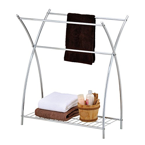 3 Bar Freestanding Bathroom Chrome Towel Rack & Holder with Wire Shelf