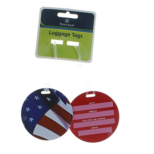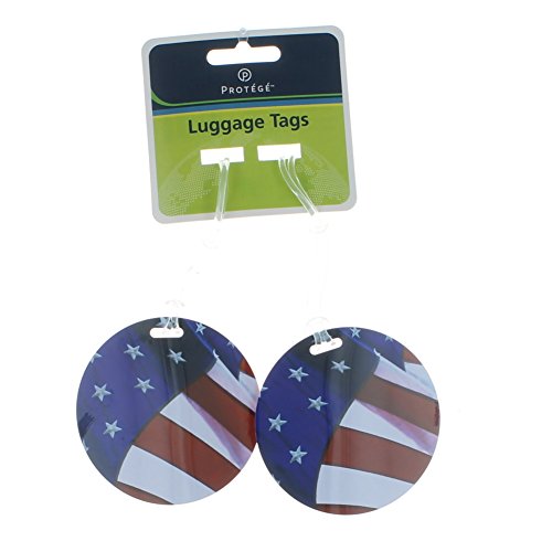 Set of 4 Protege Round Style Luggage Tags Suitcase ID American Flag