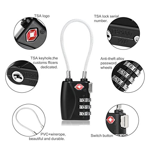 -. Feature : TSA APPROVED LAGE LOCKS: Travel Sentry Accepted and recognized cable locks. TSA screeners will unlock and relock your lage bag without having to break the lock open which would leave your belongings vulnerable to theft. / 3 DIAL COMBINATION & FLEXIBLE STEEL CABLE: Easy to set and reset combination, Keyless convenience, 1000 combo possibilities, unique side window for easy combination viewing. Cable size is perfect for thread through all standard sized zippers and keep several zippers/compartments toggether at one time. / MULTIPLE USES: Not Only for international travel, also use it at Work, Gym Locker, School, Coffee bar, or Home for securing personal belongings such as suitcase, bag, back packs, cabinet and etc. / Sturdy, Durable & Dependable: Heavy Duty Body, compact, lightweight, high quality Zinc Alloy to provide you a Lifetime of Security and Peace of mind. / NOTICE: You should remember the first code you reset.