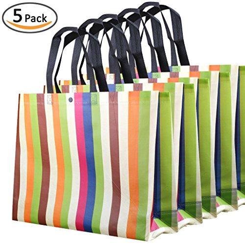 Rumcent Large Size Durable Reusable Non-woven Gift Bag,Hand Bag,Shopping Bag,Promotional Bag,Color Stripe Pack of 5 Pcs