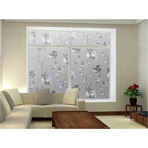 Studio : Polly Online Shop Publisher : Polly Online Shop Binding : Kitchen Product Description No Adhesive Static Cling Window Film Material: environmentally friendly PVC Pattern: Silver Hibiscus