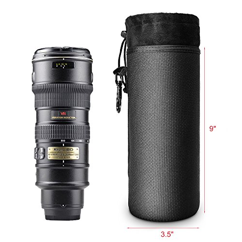 Lightning Power - Splashproof Thick Neoprene Protective DSLR Camera Lens Pouch Bag Case with Metallic Swivel Hook for Canon / Sony / Nikon (Large)