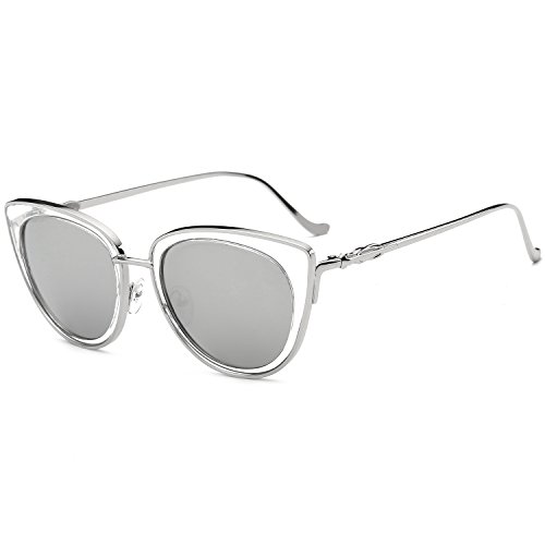 SojoS Retro Fashion Cat Eye Women Sunglasses Metal Frame Mirrored Lenses SJ1002 Silver Frame/Silvered Lens
