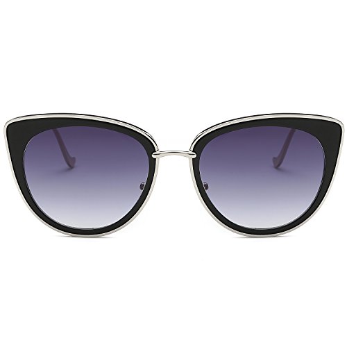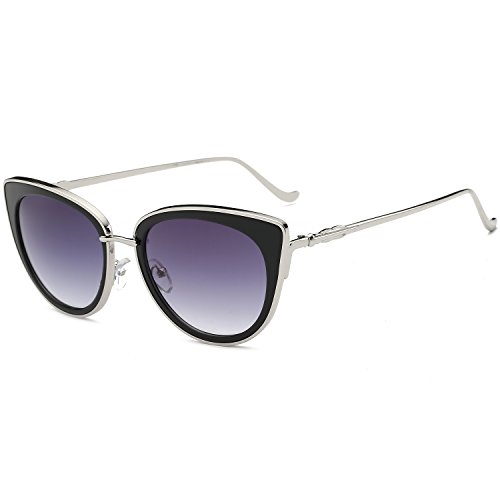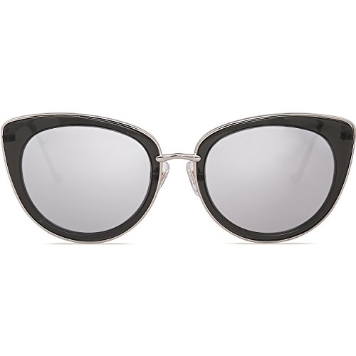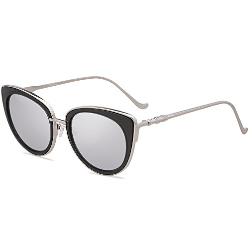 SojoS Retro Fashion Cat Eye Women Sunglasses Metal Frame Mirrored Lenses SJ1002 (C9 Silver Frame/Black&Silver Mirrored Lens, 54)