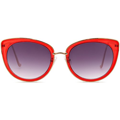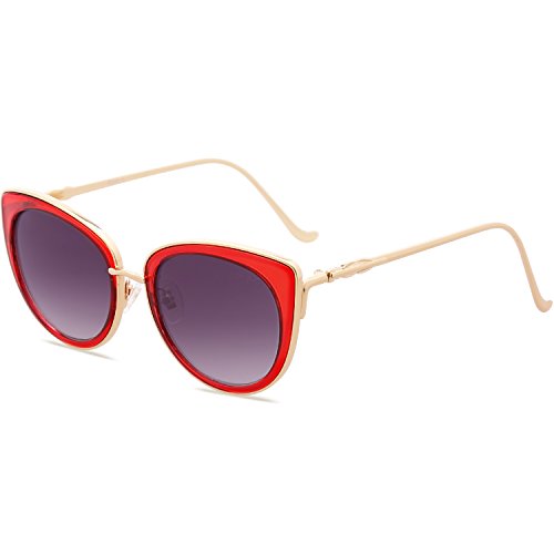 SojoS Retro Fashion Cat Eye Women Sunglasses Metal Frame Mirrored Lenses SJ1002 (C8 Gold Frame/Red&Grey Lens, 54)