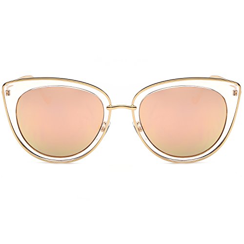 SojoS Retro Fashion Cat Eye Women Sunglasses Metal Frame Mirrored Lenses SJ1002 Gold Frame/Pink Mirrored Lens