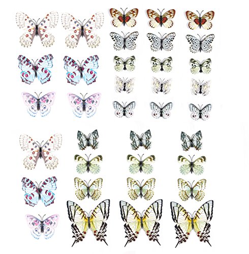 36-Pack Butterfly Wall Decals - Colorful 3D Double Wing Butterflies Decorative Wall Stickers, Art Décor for Kids, Bedroom and Nursery Room, Multicolored 4 Sizes Included