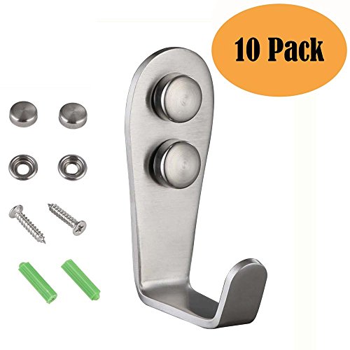 Utensil Hook Garage Hook 10 Pcs, Angle Simple SUS304 Stainless Steel Coats Backpack Purse Holder Pots And Pans Hanger Cabinet Closet Towel Robe Hook Swimsuits Clothing Hook Wall Mount, Brushed Nickel