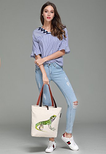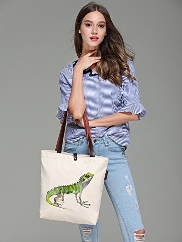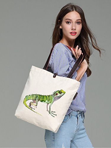 So'each Women's Lizard Animal Graphic Canvas Handbag Tote Shoulder Bag