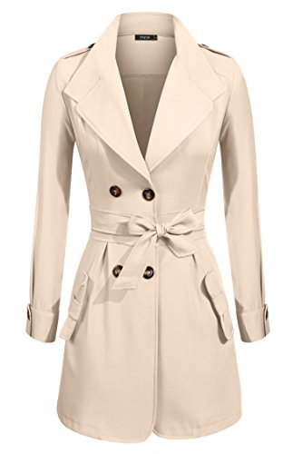 Finejo Women's Double Breasted Slim Fitted Dust Coat Winter Trench Coat Jacket