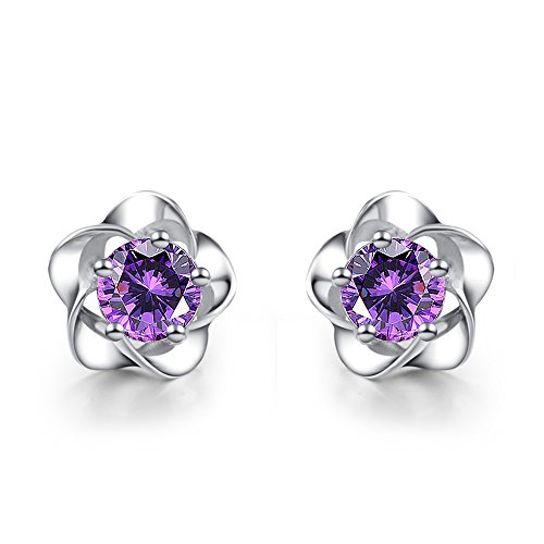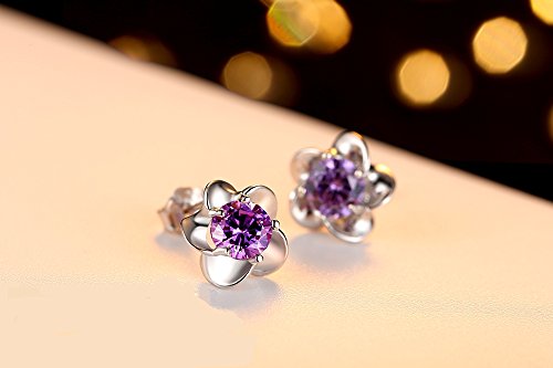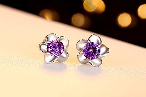Fashmond Ohrstecker Damen Ohrschmuck mit Blumen Lila Violett Kristallen aus 925 Sterling Silber Geschenke fur Kinder Frauen Madchen Jungen Allergiefrei
