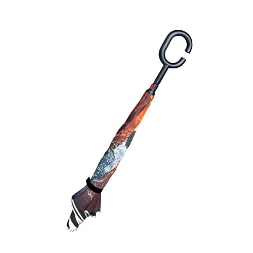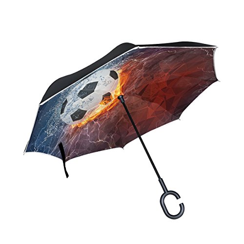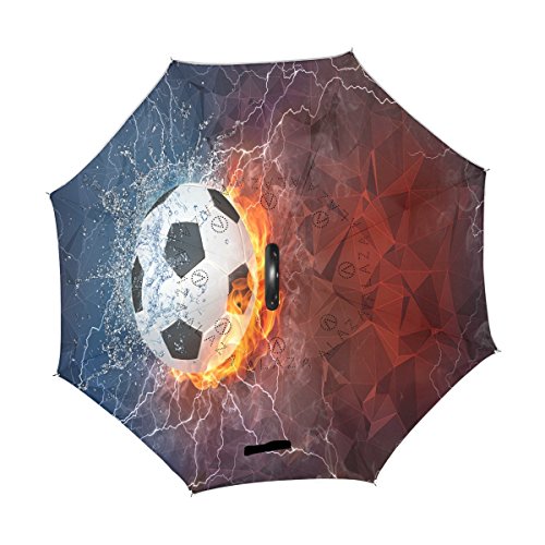 (ALAZA)/Accessories/Umbrellas/DIRECT FROM USA/ALAZA Sport Cute Soccer Ball on Fire and Water Inverted Umbrella, Large Double Layer Outdoor Ra...