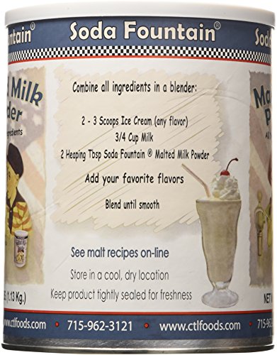 Experience the classic malt flavor of an old fashioned soda fountain. 1 lb. Canister of Malted Milk Powder - Approximately 20 servings per 1 lb. Canister. PLEASE NOTE: Malted Milk Powder does not dissolve in liquids, such as: Water or Milk. You add the Malted Milk Powder to Ice Cream Shakes to make Ice Cream Malts. You can also sprinkle on top of Ice Cream to make a Dusty Road Sundae or you can Bake with our Malt. Keep in a cool, Dry Location if kept tightly sealed. Does contain Wheat and Milk Ingredients: Wheat Flour and Malted Barley Extracts, Dry Whole Milk, Sucrose, Salt, and Sodium Bicarbonate.Feature