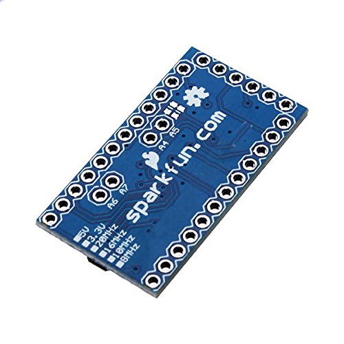 The Pro Mini is a microcontroller board based on the ATmega328 for Arduino. With 14 digital input / output pins (of which 6 can be used as PWM outputs), 8 analog inputs, an on-board resonator, a reset button, and holes for mounting pin headers. Six pin header can be connected to an FTDI cable to provide USB power and communication to the board.