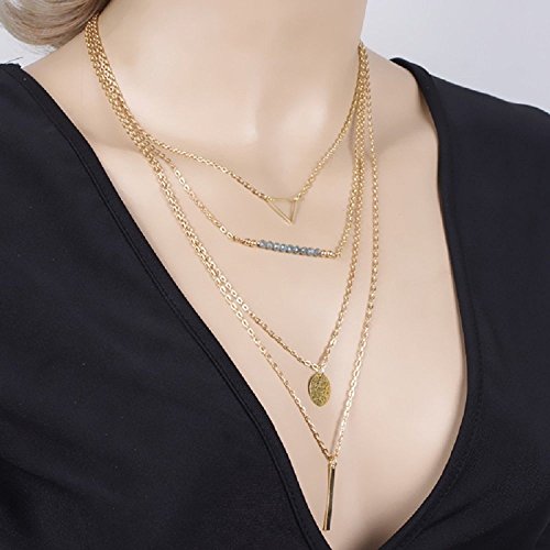 Leiothrix Fashion Multi-element Composite Triangle Crystal Beads Pailette Eyelet Multilayer Necklace for Women Girls with Alloy Suitable for Party Casual