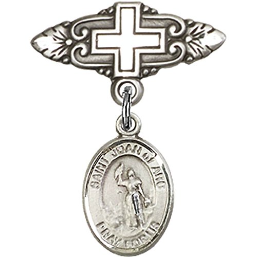 -. Title : Sterling Silver Baby Badge with St. Joan of Arc Charm and Badge Pin with Cross 1 X 3/4 inches