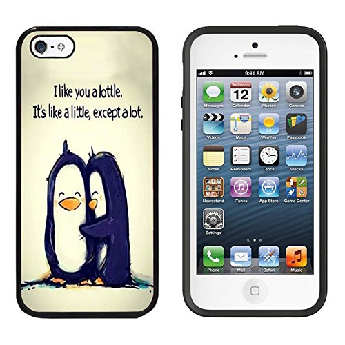 iPhone SE Case, DOO UC (TM) Ultra Protective Cases For Apple iPhone SE (2016) & iPhone 5S 5 Black Case - Cute penguin couples "I love you"