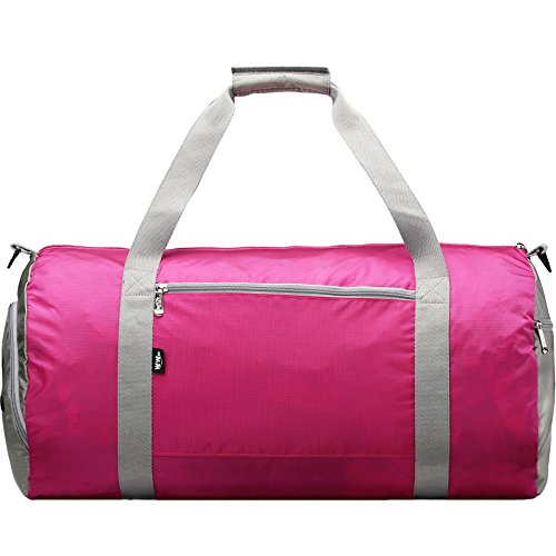 -. Feature : ★Roomy main compartment with zippered pockets for organization. Easily holds a couple changes of clothes, towel and a pair of shoes. Front and sides zip pocket for additional storage / ★On one end-cap of the gym duffle bag is a ventilated compartment, great for keeping smelly shoes and gear separate from the rest of your stuff / ★Comfort padded, removable, adjustable shoulder strap with padded haul handles for easy transport / ★This gym training bag can be packed up into carrying pouch for easy compact storing when not in use.Open size 23x12 x12 inch, Foldable size 12X2 inch / ★100% GUARANTEE: If there is any issue with gym duffel bag, we will RESEND you a NEW one OR give you a FULL REFUND!