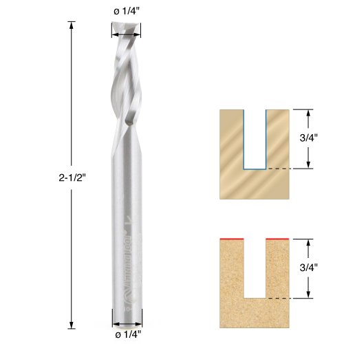 Amana Tool 46102 Spiral Flute Plunge 1/4-Inch Diameter x 3/4-Inch Cut Height x 1/4-Inch Shank 2-Flute Solid Carbide Router Bit