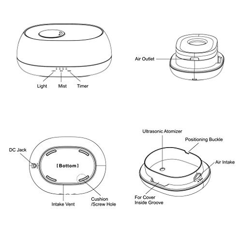 ❄❄Safe Material❄: PP Hard plastic Working time: up to 3 hours. Ultrasonic vapor diffusing keeps the original effect of essential oils instead of heating or buming that may destroy their original molecular structure.