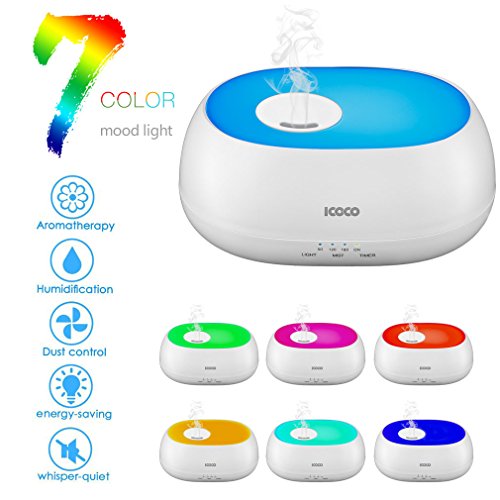 ❄❄ Healthy❄ : Combines the effects of aroma-therapy, for aqua-therapy and light-therapy. Humidify the air, breathe easier, and relieve cough and sinus congestion due to colds, allergies, and flu. Reduce odors in your house from cigarettes, cooking, and pets.Ultrasonic transducer vibrating at a frequency of 2.4 million times per second makes the molecule of water and essential oils so tiny that it is easily absorbed by our body.