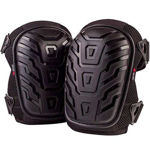 - DESIGNED FOR COMFORT AND SAFETY. Soft gel core and durable EVA foam padding cushion your knees for hours on end. A heavy-duty thick poly shield protects against cuts or scrapes on any terrain