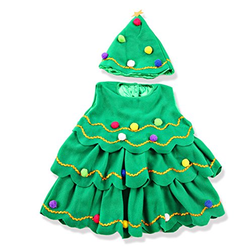 -. Feature : Made by Polyester / Colorful ball added a lovely, lively feel. / Hat is designed so cute and adorable. / This Christmas Tree Clothing Sets is perfect for wedding, photo and party. / This wonderful Christmas Tree costume will make your little kids look more adorable and cute. Stylish and fashionable, exquisite adorable design will fully make your kid stand out in public and attract more attention.