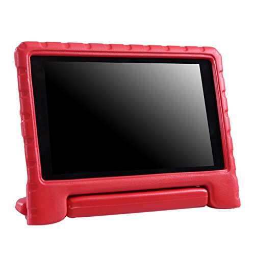 -. Feature : Childproof, heavy duty, drop proof, red protector for Amazon Fire HD 8 - durable rubberized 100% non-toxic EVA foam cushion for best shockproof protection. Tough bumper fully covers back of device, raised bezel around edges protects display from face first hard screen falls, shock and impact / Multi-functional hard cover carrying case- large handle designed for comfortable one handed grip (suitable for smaller children's hands) for easy carry and travel | Handle folds into uP.R.Ight kickstand for watching movies or improved typing angle. / Customized cutouts give open access to volume & hold buttons, charging port, headphone port, speakers and front / rear camera / Ideal for boys, girls, toddlers, school, and the best gift idea for a tablet user - Made of strong & lightweight, colorful, sturdy, child friendly and kid safe EVA foam to guard your new 2016 Fire HD 8 / Only fits the 2016 Fire HD 8 tablet | Not compatible with any previous Fire HD8, Fire 7, Voyager, or Paperwhite