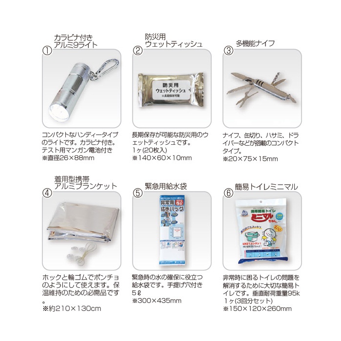 세트 내용:카라비너부 알루미늄9라이트/방재용 웨트(wet) 티슈