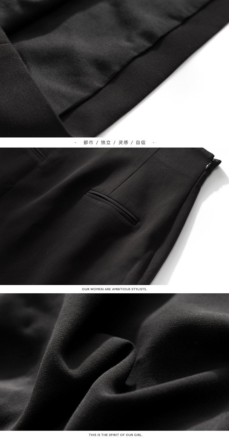 | 面 料:71.1%聚酯纤维 20.8%粘纤 8.1%氨纶里 料:聚酯纤维颜 色:黑色 |