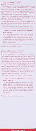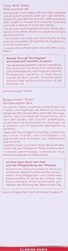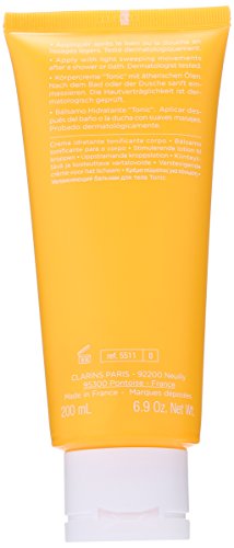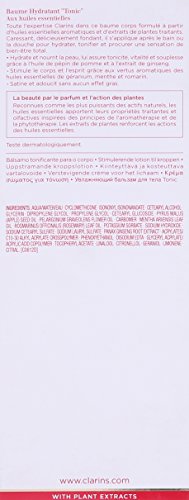 -. Binding : Health and Beauty -. Brand : Clarins -. Department : womens -. EAN : 3380810551105 -. Feature : Apply lavishly, all over your body, to experience the lighthearted feeling of a French garden / Uplifting aroma of crispy mint and rose reactivates with the heat of your body creating an aura of enchantment that lasts all day / It is recommended for casual wear -. Label : Clarins -. Manufacturer : Clarins -. Model : 3380810551105 -. MPN : U-SC-2867 -. NumberOfItems : 1 -. PackageQuantity : 1 -. PartNumber : U-SC-2867 -. ProductGroup : Beauty -. ProductTypeName : BEAUTY -. PublicationDate : 2014-04-21 -. Publisher : Clarins -. ReleaseDate : 2014-04-16 -. Size : 6.9 oz. -. Studio : Clarins -. Title : Clarins Toning Body Balm, 6.9 Ounce