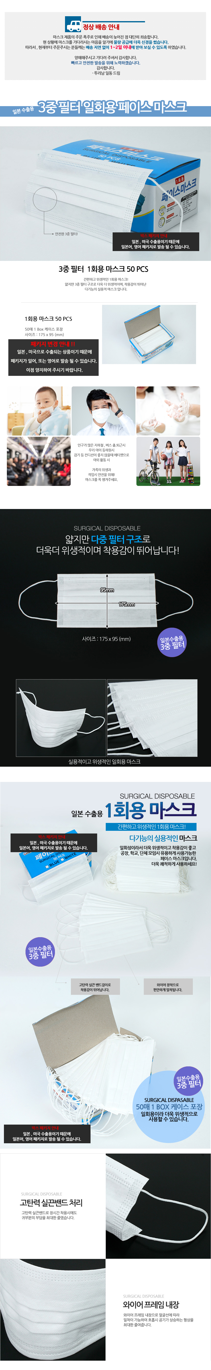 Disposable masks / 50pc, 100pc / three-layer filter / Korean dust mask