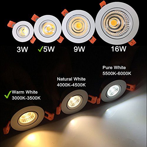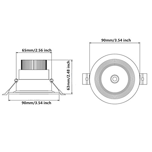 - BASIC PARAMETERS: Dimmable, Dia.3.54in(90mm), Cutout Dia.2.5in(65mm), Directional 60 beam angle, White Trim, Directional Adjustable, CE RoSH FCC Approved, 5W COB spotlight, COB integrated chip, Driver Included, working with line voltage directly.