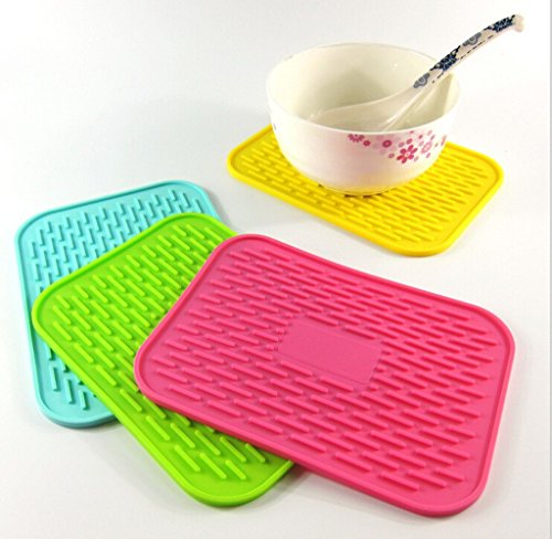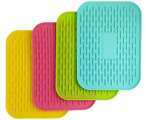 6" X 8" SILICONE POT HOLDER, HEAT INSULATED PAD, TRIVET MAT, CUP DRYING MAT , TABLEWARE PAD COASTERS, BAKING GADGET- WATERPROOF, NON-SLIP, TRIVET, TABLEWARE PAD COASTERS, SET OF 4 BY UHQ