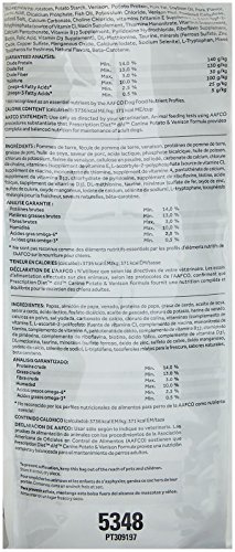 -. Binding : Misc. -. Brand : Hill's Pet Nutrition -. Department : dog-veterinary-diets -. EAN : 0052742534800 -. Feature : Highly digestible single intact animal protein source and single carbohydrate source to help avoid common food sensitivities / High levels of omega-6 and omega-3 fatty acids that help nourish the skin and coat / Combination of antioxidants helps maintain a healthy immune system and skin barrier function / Four different novel protein sources to provide more choices in managing food sensitivity -. Label : Hill's Prescription Diet -. Manufacturer : Hill's Prescription Diet -. Model : HLL-406 -. MPN : HLL-406 -. PackageQuantity : 1 -. PartNumber : HLL-406 -. ProductGroup : Pet Products -. ProductTypeName : PET_SUPPLIES -. Publisher : Hill's Prescription Diet -. Studio : Hill's Prescription Diet -. Title : Hill's Prescription Diet d/d Canine Skin Support Potato & Venison - 8lb -. UPC : 052742534800