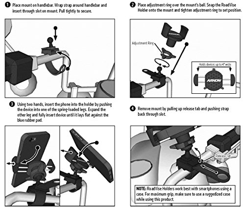 Arkon RoadVise Handlebar Phone Strap Mount for iPhone 7 6S 6 Plus 7 6 5S Galaxy S7 Retail Black