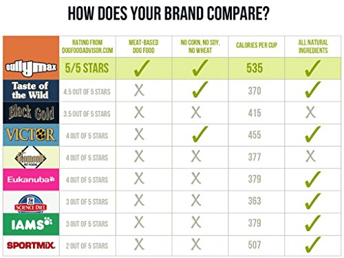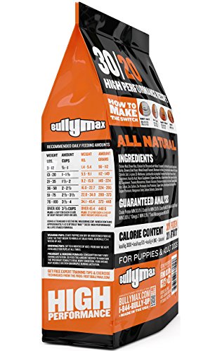 -. Binding : Misc. -. Brand : Bully Max -. Feature : The ONLY 5-Star rated performance dog food / The ONLY meat-based formula in it's class / NO Corn, NO Wheat, NO Soy / MORE CALORIES than any other formula in it's class (535 per cup) / 30% Protein, 20% Fat, ALL NATURAL Ingredients -. Label : Bully Max -. Manufacturer : Bully Max -. PackageQuantity : 1 -. ProductGroup : Pet Products -. ProductTypeName : PET_SUPPLIES -. Publisher : Bully Max -. Studio : Bully Max -. Title : Bully Max High Performance Super Premium Dog Food