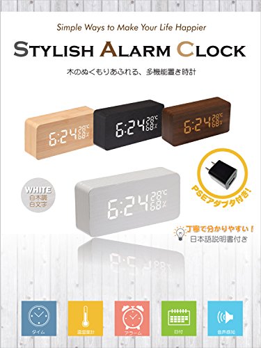 -. Feature : とにかく明るい LED表示! 12h/24h表示切り替え可能。夜の時間帯(午後6時~午前7時)は自動的に明るさが落ち、目に優しい設計になっています / 温度・湿度・カレンダーなどを自動的に切り替えて表示する設定ができます / 音感センサー付き! 音声感知モードをONにしておくと、普段は時計が表示されず、振動や、手を叩く音でパッと点灯する音感センサーが付いています(要設定) / 安心のPSE規格アダプター付きでコンセントからの電力供給可能 / 【重要事項】電源は、USBもしくはコンセントから供給することをお勧めします。乾電池でも動きますが、あくまでも非常用で、新品でも2~3日で切れてしまいます。同根のUSBケーブルと、PSE認証済みのアダプターをご利用ください