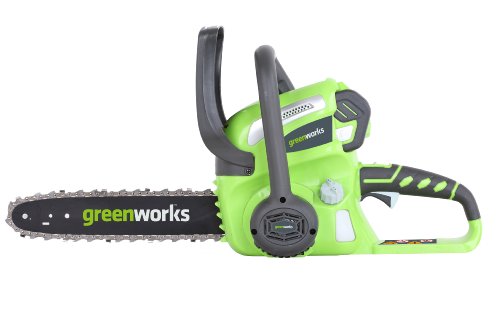 Green Works G-MAX 40V Lithium-Ion 12-inch Chainsaw features a robust 12-inch steel bar and chain, 3/8-inch chain pitch, automatic oiler and tool-less chain tensioning. Tool Only Model. Compatible with G-MAX Batteries 29462 and 29472 only.Feature