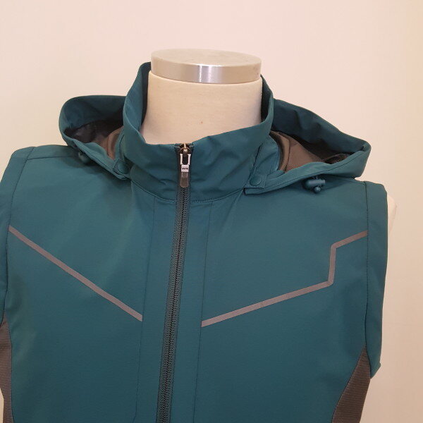 ㅡ안감이 필요없는 2.5L 라미네이팅 소재를 사용하여 일상생활에서도 바람을 막아주는 바람막이베스트.ㅡ피부가닿는 소재 안쪽에 피부에 붙지않도록 특수가공처리가 되어있어 안감이없이 가볍게 입을수 있는 제품.ㅡ가슴부위에 스포티한 웰딩으로디자인 된 제품.ㅡ봄부터 가을까지 기후의 변화에 따라 장용이 용이한 바람막이 베스트입니다.