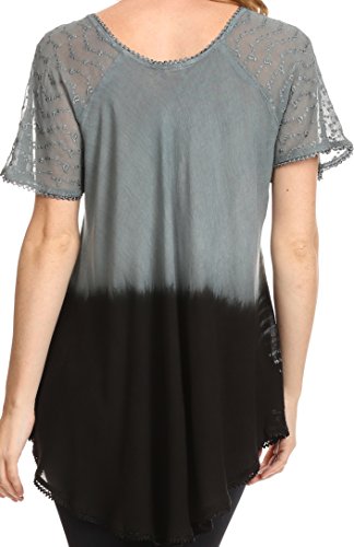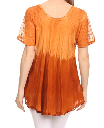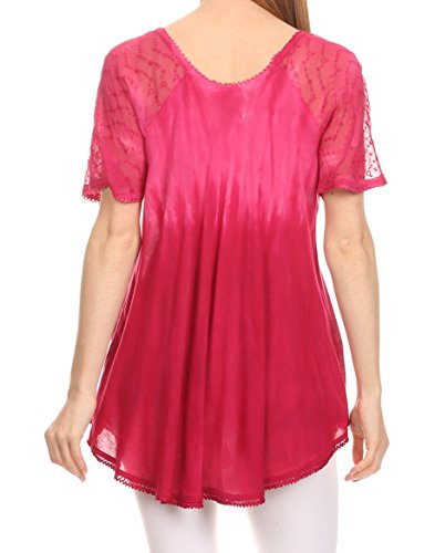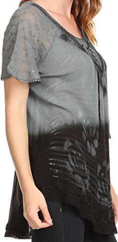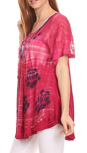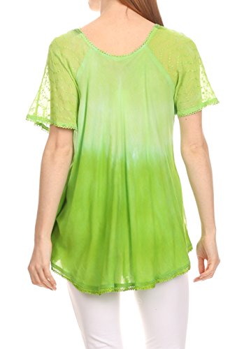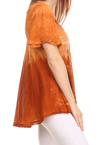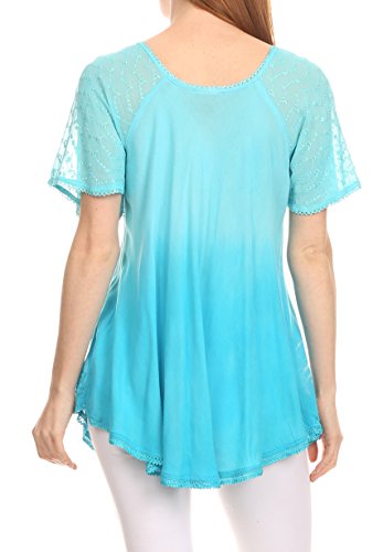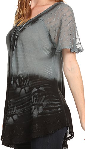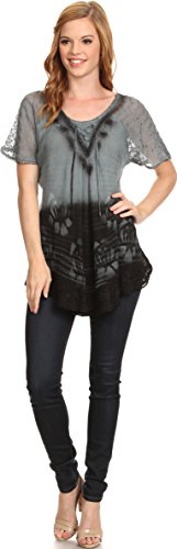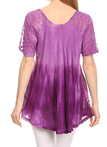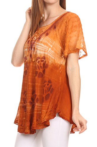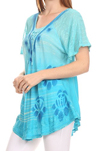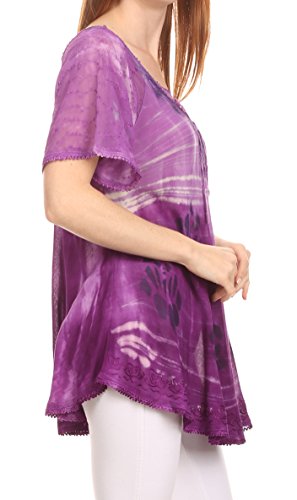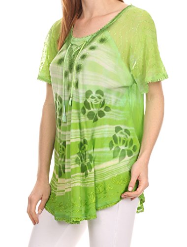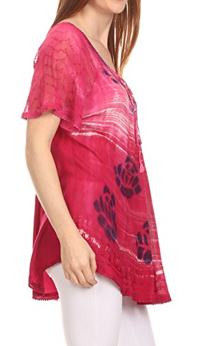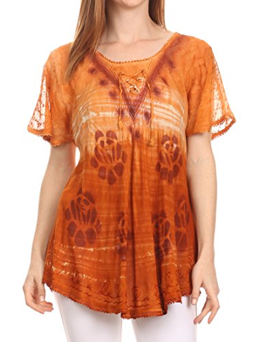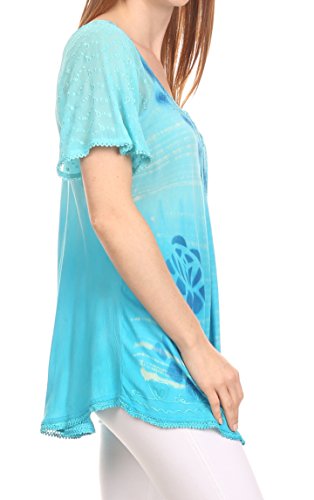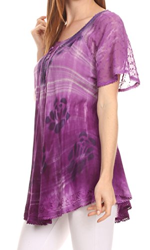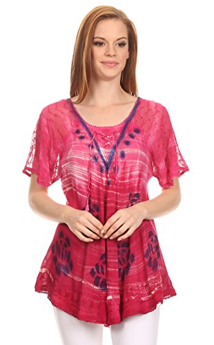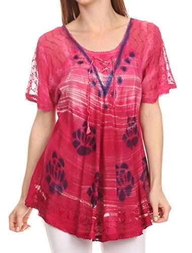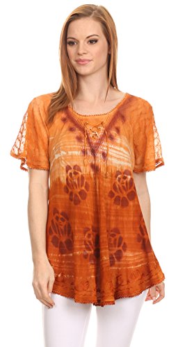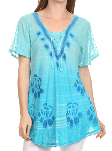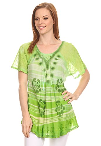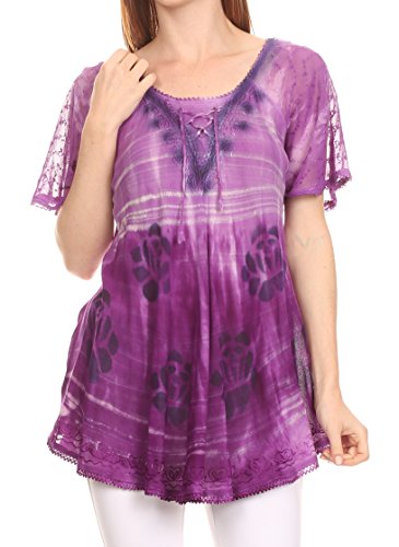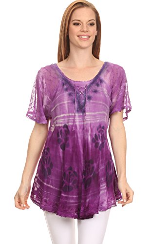 Binding : Apparel Product Description This blouse is a unique handmade garment. The cap sleeves are made of an embroidered lace material. The cut is very feminine, comfortable, and forgiving that drapes and flatters any figure. It's made to fit loosely. The material is very thin and lightweight but durable. The dye is a unique tie dye wash of a monochromatic color spectrum design. There is embroidery designs located throughout the blouse, and a corset design neck/chest enclosure that is adjustable and can be tied or left undone. You can pair this top with practically anything from pant designs, shorts, skirt and tights, or over beachwear like a coverup. Pair with shoes, boots or sandals. You can even wear in cooler weather by layering with other pieces! Hand wash separately in cold water. Line dry. Imported. | Material: 100% Cotton. About Sakkas Store: Sakkas offers trendy designer inspired fashion at deep discounts! We work day and night to bring you high quality clothing and accessories for a fraction of the price you pay at department stores.Our incredible deals sell fast, so don't wait!