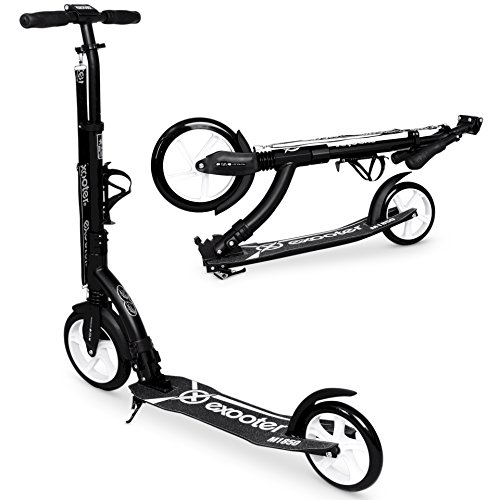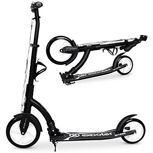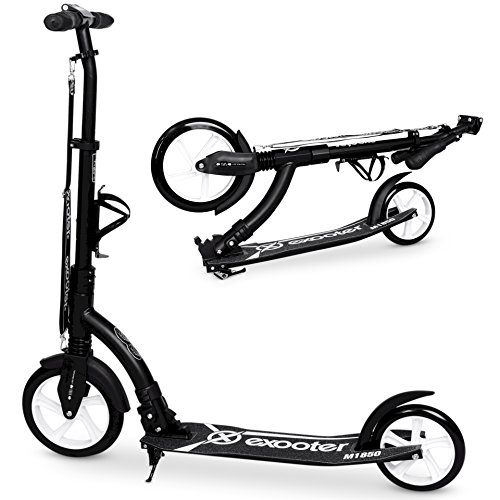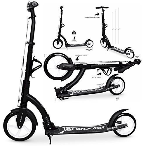 Title : EXOOTER M1850BW 6XL Adult Kick Scooter With Front Suspension Shocks And 240mm/180mm White Wheels In Black Finish.