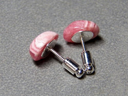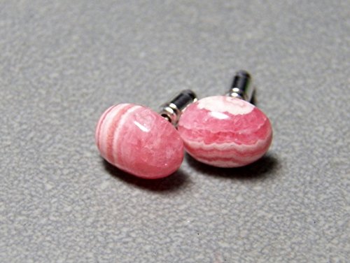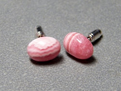 -. Title : 8x10mm Rhodochrosite and sterling silver post earrings