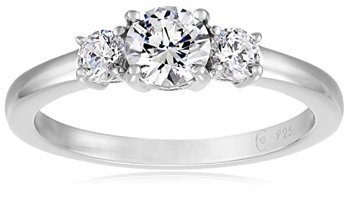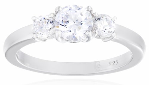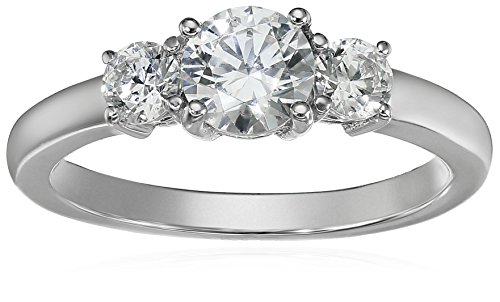 Platinum-Plated Sterling Silver Swarovski Zirconia 1 cttw Round 3 Stone Ring, Size 5