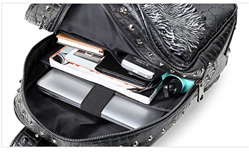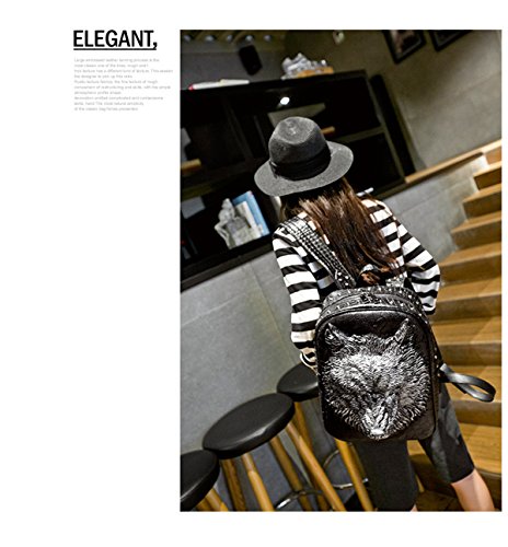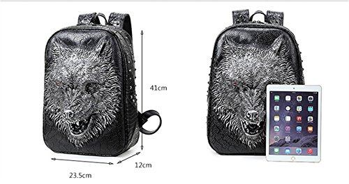 -. Feature : Material --- Made of High Quality PU Leather with Non-fraying Stitching and Strong Zippers, Sturdy and Durable. / Large Capacity & Reasonable Structure --- With the dimension of 18" tall, 4.7 width, the main compartment can hold up laptops to 15.6 inch. Besides, it has laptop padded sleeve and two small openings which can store stuffs like card, mobile phone, keys, etc. / Unique Cool 3D Design Daypack --- This whole new released chic backpack can express your own voice on fashion. The Wolf P.R.Inted in the front of the bag is so vivid, makes it look lifelike. Besides, the bag is ornamented with 3D metallic rivets, which make it more vogue, you're sure to be attractive and outstanding as you carry it out on the way to school or the traveling. / Adjustable Shoulder Strap --- The wide strap can ease the pressure on the shoulder, comfortable top handle make it easy to carry. And with flexible adjustable buckle, you can adjust the length of the shoulder straps easily. / Overall Size --- 12.2"L x 4.7"W x 18.1"H / 31cm L x 12cm W x 46cm H. This shoulder backpack is suitable for men or women, boys or girls who need a high capacity daypack to travel, sport time or go to school, even workplace.